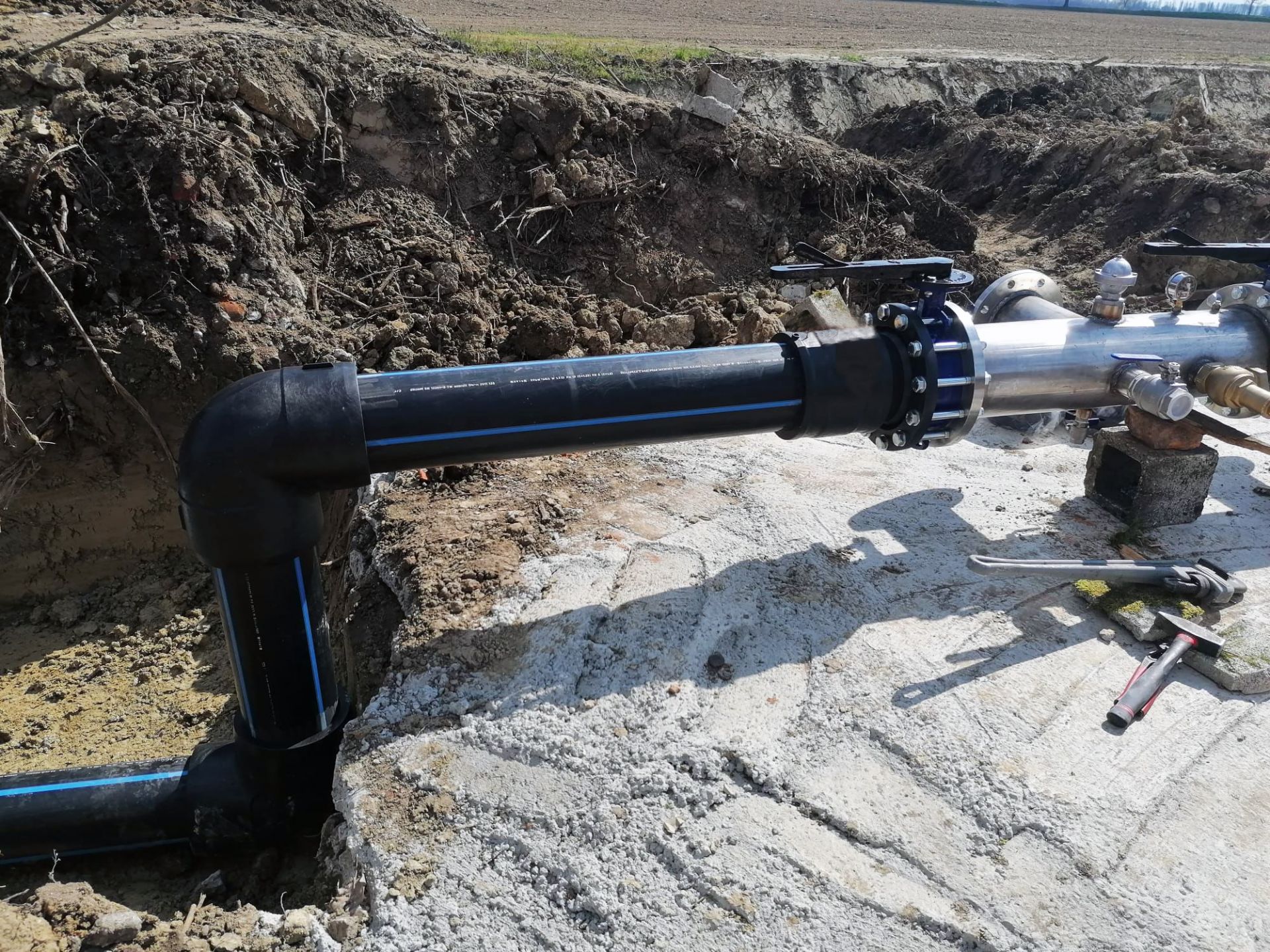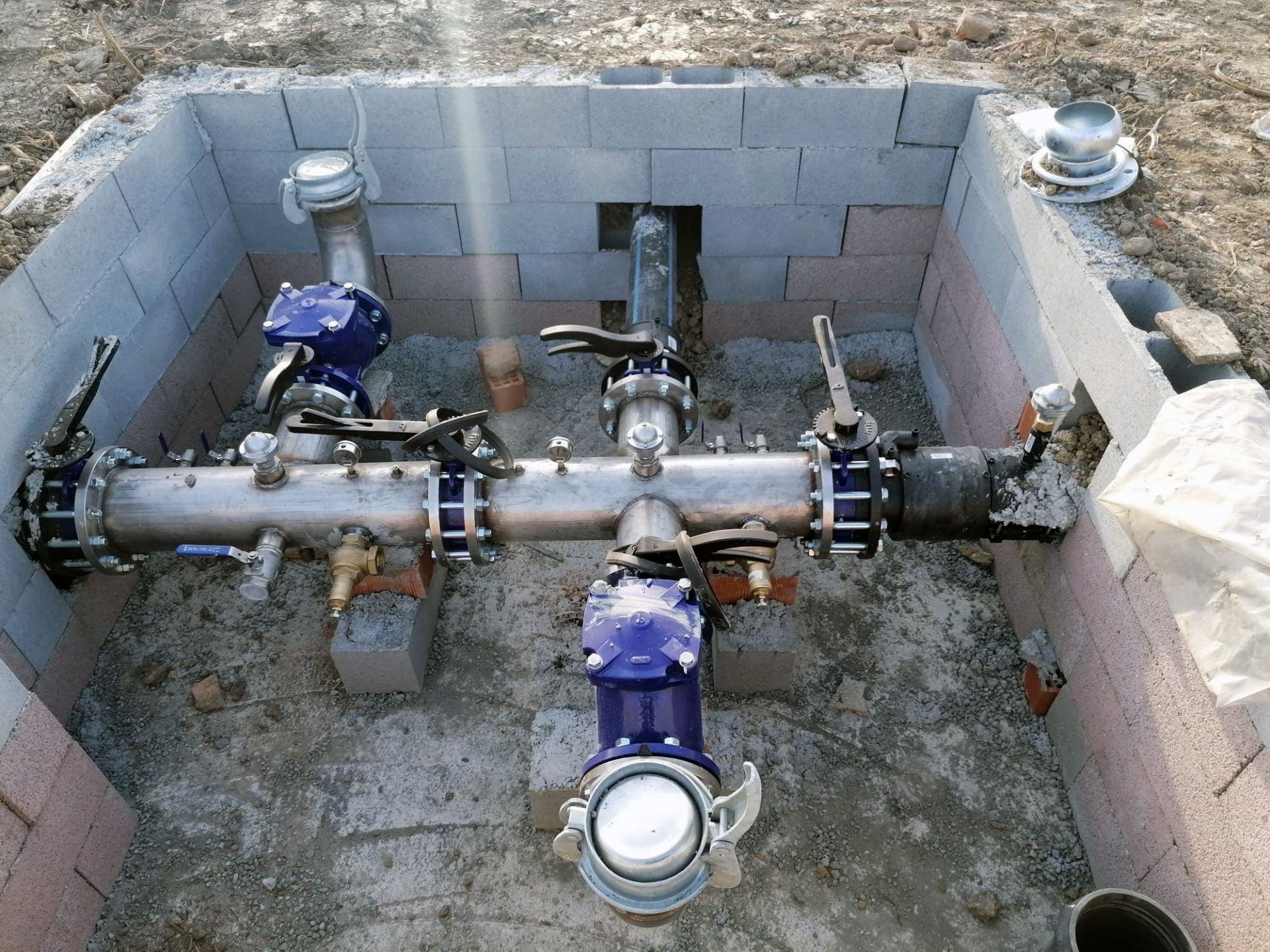 Gruppo di manovra per pompaggio acqua o miscela di acqua e liquame per irrigazione campi agricoli.
