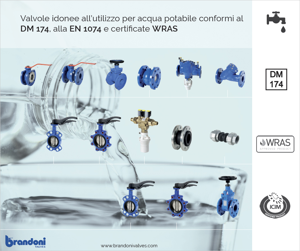 Nella gamma produttiva di Brandoni sono presenti diversi articoli che sono idonei o certificati per l’utilizzo con acqua potabile.